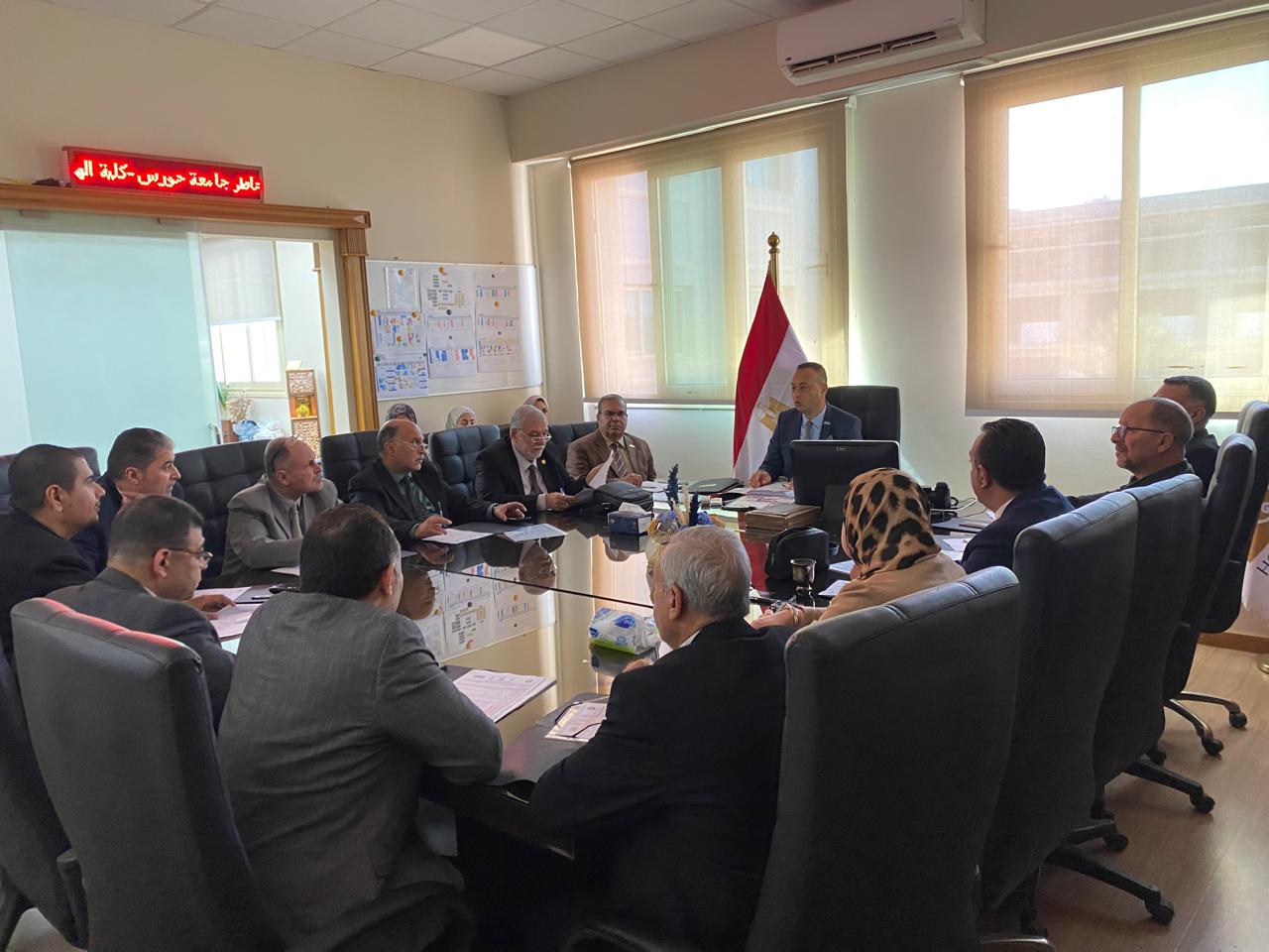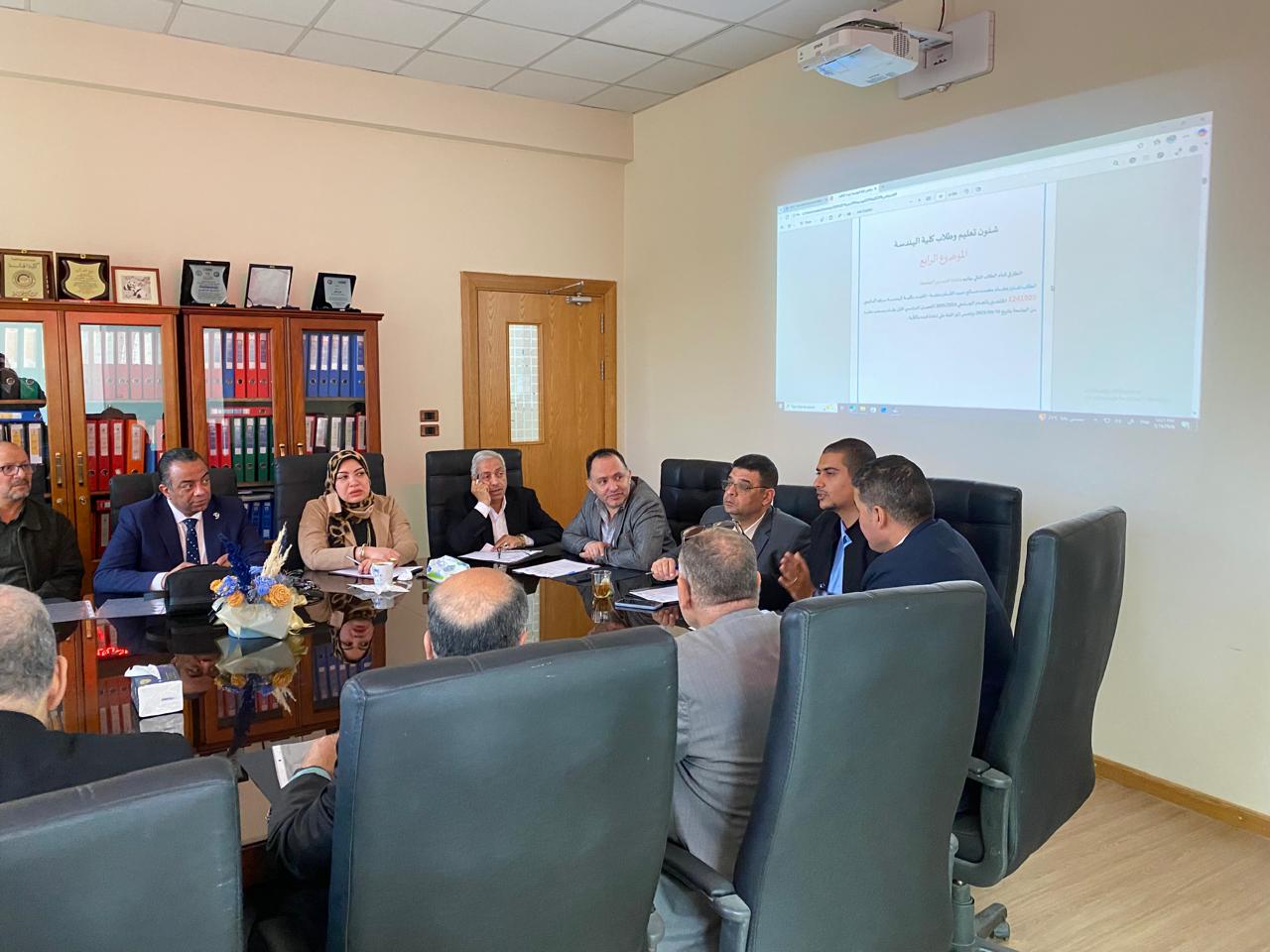 إنه في يوم الأحد ١٥ فبراير ٢٠٢٦ عقد اجتماع مجلس كلية الهندسة رقم ٨/١ من العام الجامعي ٢٠٢٥/٢٠٢٦ برئاسة أ.د حاتم عوض خاطر – عميد كلية الهندسة جامعة حورس مصر وبحضور السادة وكلاء الكلية والسادة رؤوساء الأقسام والسادة منسقي البرامج العلمية وأعضاء المجلس الموقرين .
