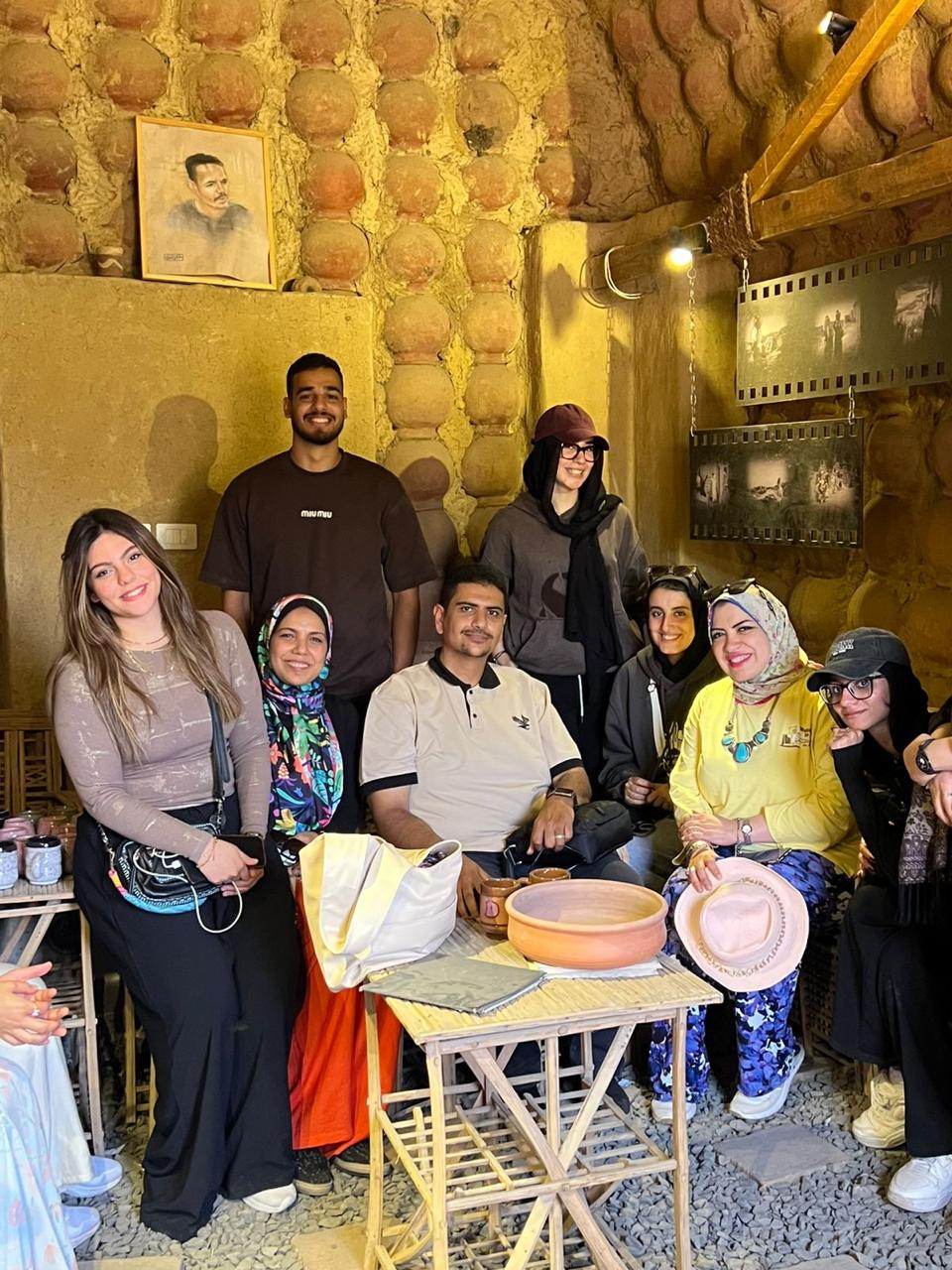 انطلقت الورشة في قرية النزلة، المعروفة تاريخياً بصناعة الفخار، وفي ضيافة كريمة من معالي المعماري/ حمدي سطوحي في مشروعه بمدينة النزلة. تناولت الجلسات تقنيات البناء بالفخار، وأثرها البيئي، وآليات استدامة الحرفة وتطبيقاتها في البناء. واختُتم اليوم ببرنامج ثقافي وترفيهي إلى بحيرة وادي الريان، شمل مشاهدة البحيرة والشلالات، ركوب الفلوكة، وحضور أمسية بدوية للتعرّف على الثقافة المحلية.