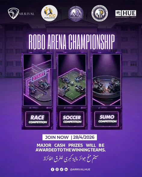 #horusuniversity #FacultyofEngineering #arrivalteam #RoboArenaChampionship #SumoRobot #SoccerRobot #RaceRobot