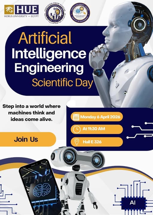 Horus University – Faculty of Engineering proudly invites you to the Artificial Intelligence Engineering Scientific Day, stepping into a world where machines think and ideas come alive.